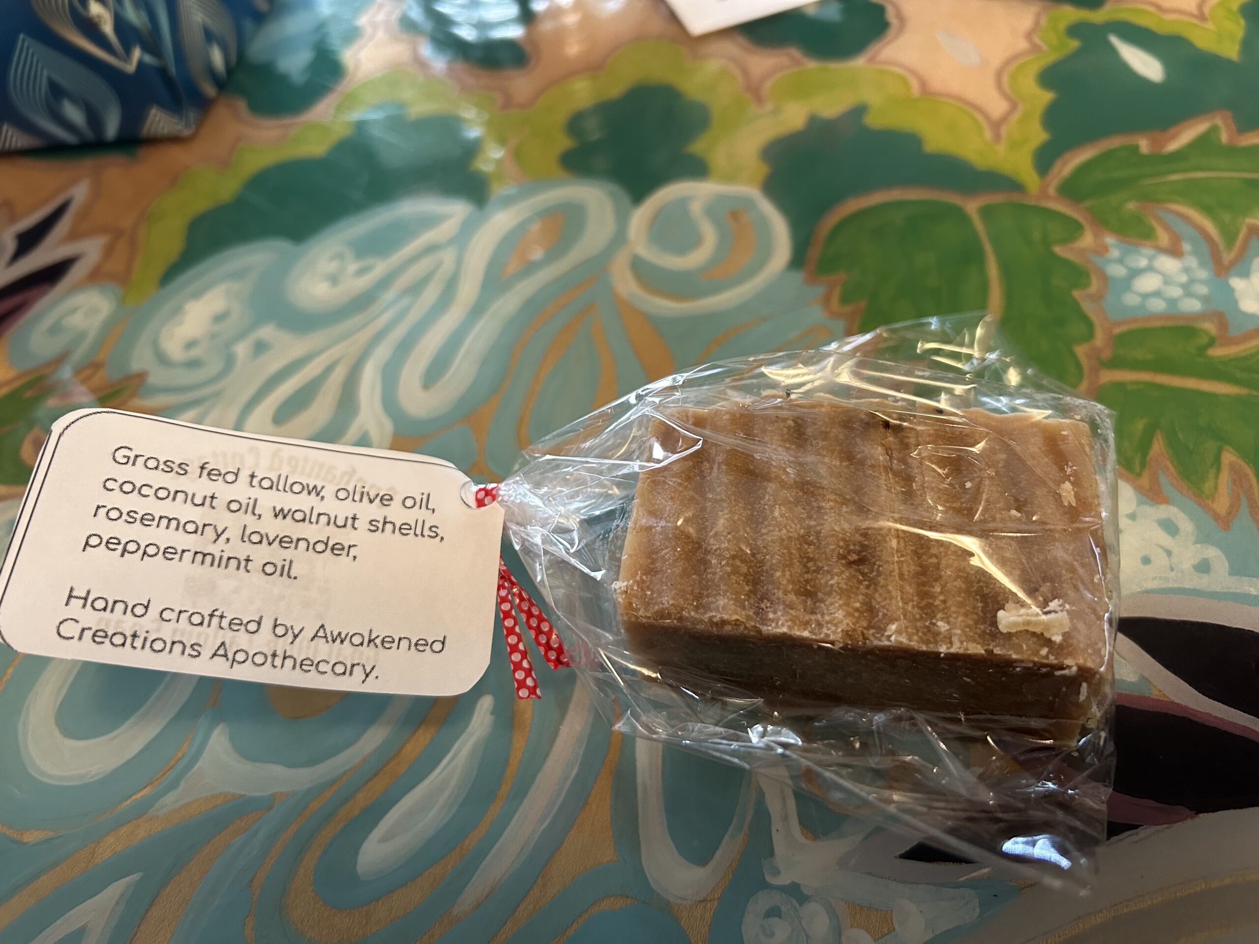 Tallow Soap$5.00 Subtotal: Add-ons total: + Total: Tallow Soap quantity Add to cart Categories: Bath Salts Soap Click to share on Facebook (Opens in new window)Click to share on Twitter (Opens in new window)Click to share on Pinterest (Opens in new window)Click to share on Tumblr (Opens in new window) Description Reviews (0) Grass fed tallow, olive oil, coconut oil, walnut shells, rosemary, lavender, peppermint oil. Hand crafted by Awakened Creations Apothecary. Reviews There are no reviews yet. Be the first to review “Tallow Soap” Cancel replyYour email address will not be published. Required fields are marked *Your Rating Rate… Perfect Good Average Not that bad Very Poor Your ReviewName * Email * Save my name, email, and website in this browser for the next time I comment. Δ